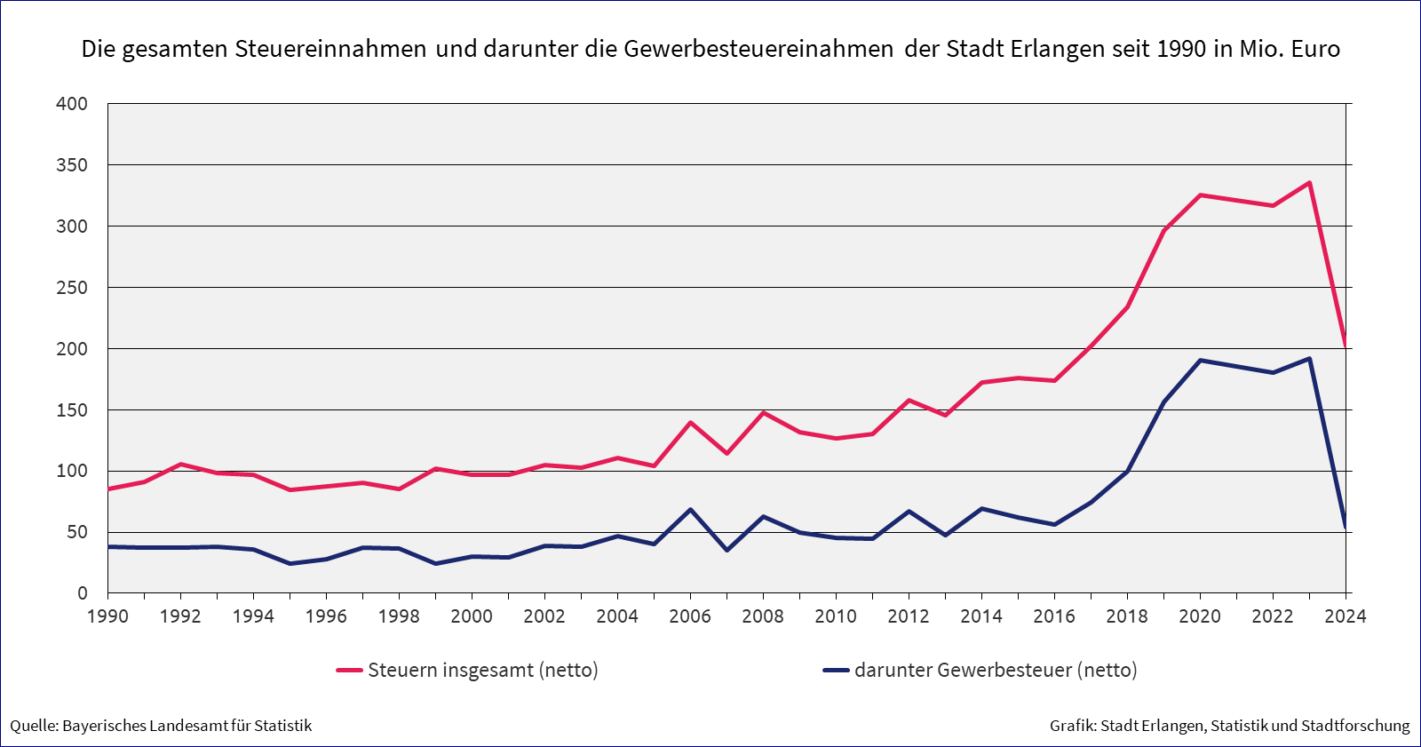 Quelle: Bayerisches Landesamt für Statistik. Siehe auch https://www.statistik.bayern.de/statistik/haushalte_steuern/oeffentliche_haushalte/index.html