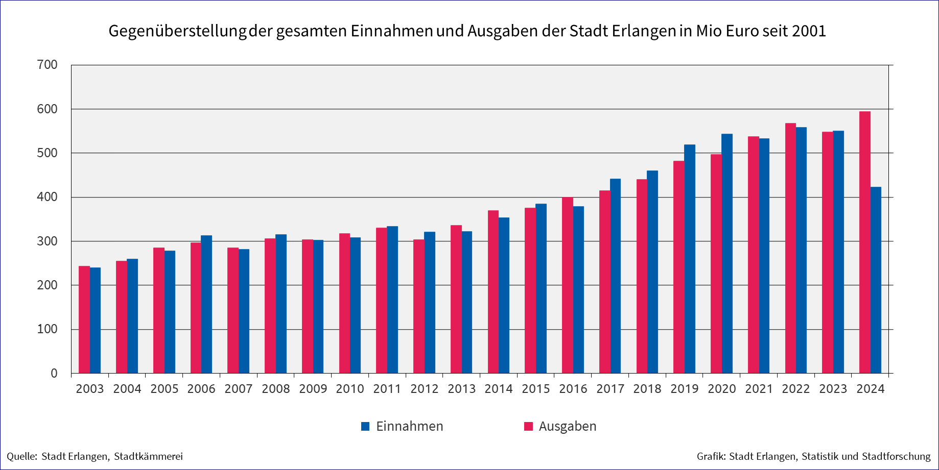 | Jahr | Einnahmen aus laufender Verwaltungstätigkeit in 1.000 EUR | Ausgaben aus laufender Verwaltungstätigkeit in 1.000 EUR | |||||||