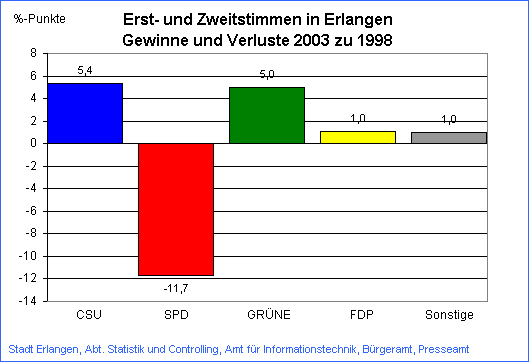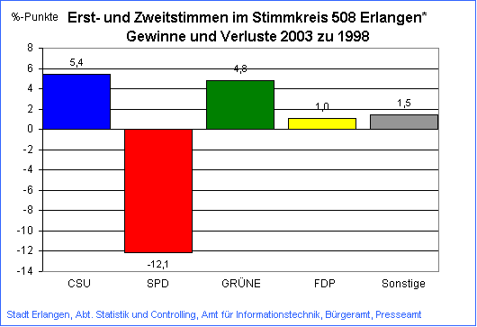 *) Der Stimmkreis Erlangen setzt sich aus der Stadt Erlangen sowie den Gemeinden Möhrendorf und Heroldsberg zusammen. Die Zahlen für 1998 wurden auf diesen Gebietsstand umgerechnet.